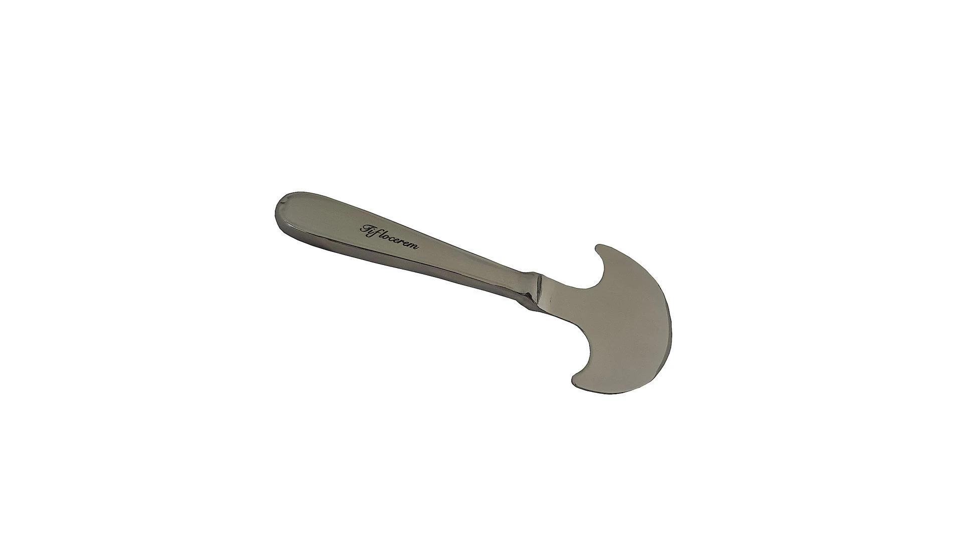 Vajilla adaptada confeccionada íntegramente en Acero Inoxidable pulido. Mango macizo con arabescos en relieve biselado. Apto para ser utilizado en la acción de corte meciéndolo.